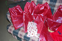 The print bag is something Crayons asked me to make out of a scrap of Christmas fabric we had; I added a pocket for a candy cane.