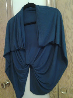 Sleeveless sage-green dress, $6.00. Imaginary conversation with myself: "You just bought a green dress, or at least a cardi that is sometimes a dress." "That's true." "Why do you need another green dress?" "It's pretty. I wants it." "See, if you had just waited, you could have saved your money." "That's different." (Squelch.)