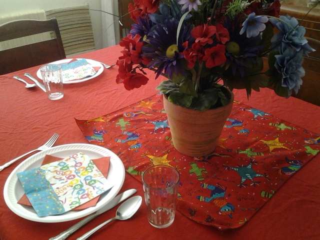 Red, sort-of-Mexican themed supper table