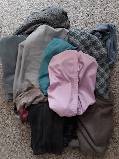 This winter I seem to have majored on sweaters, which is fine. There was a point a few years ago when I didn't have even one cardigan sweater, mostly because they were making me feel old. I've thrifted a few knit and sweatshirt-type cardigans here and there, cycled them in and out. This winter I found a grey belted cardigan I like (it's a few posts back), and there are one or two others in my closet that I wear sometimes.
